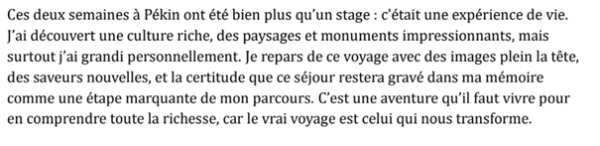 Pendant ce stage, les stagiaires ont eu l’occasion de suivre des cours de chinois, de sillonner Pékin et de découvrir la culture chinoise.