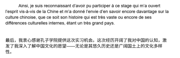 M. Christophe Le Bellego, étudiant de l’ISIMA, a exprimé ses sentiments au nom du groupe du Confucius Institute de Clermont-Ferrand Auvergne.