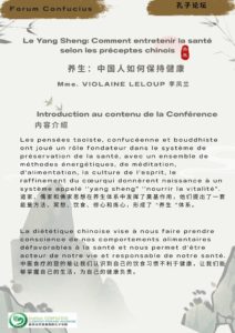 讲座 养生:中国人如何保持健康 Conférence Le Yang Sheng:comment entretenir la santé selon les préceptes chinois
