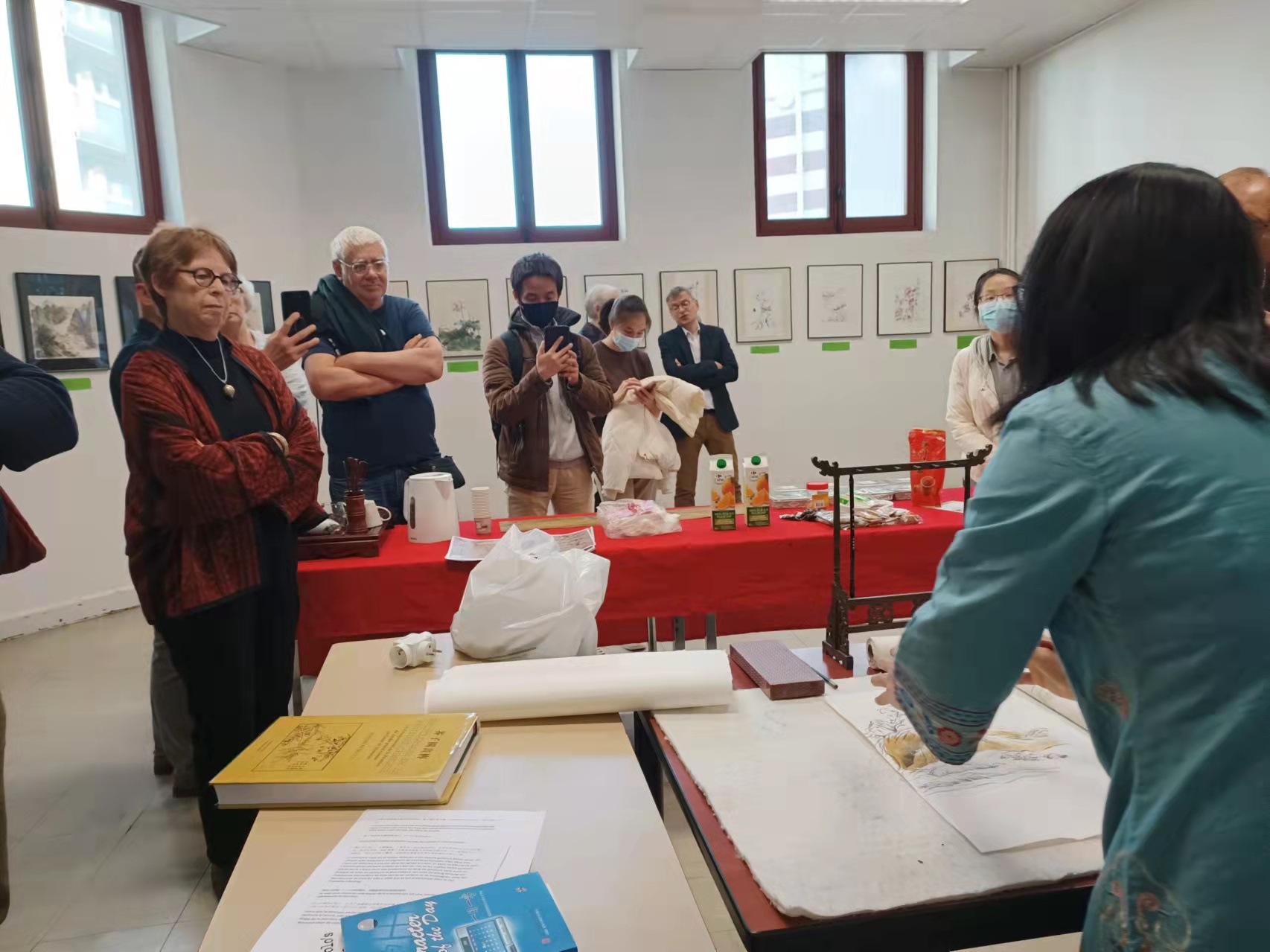 本次画展由由克莱蒙费朗孔子学院与奥弗涅-中国友协合作举办,在2022年3月21日到4月1日期间成功举行。展览期间,除了个人预约参观之外,我们还举行一次开幕式和一次中国绘画爱好者聚会,另有克莱蒙费朗市多所学校的六个团组来参观。许多观众对罗纳耶特女士精湛的技艺表达赞叹,也为中国绘画艺术的魅力所吸引。